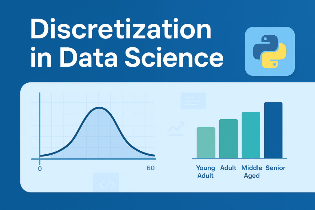 Welcome to my data science blog! If you’re diving into machine learning preprocessing techniques, you’ve likely encountered the concept of discretization. In this comprehensive guide, we’ll explore what discretization is, why it’s essential, its types, real-world use cases, and how to implement it using Python’s scikit-learn (sklearn) library. Whether you’re a beginner data scientist or an experienced practitioner, this post will serve as your ultimate resource for understanding and applying discretization to transform continuous data into actionable insights. This article is based on a detailed discussion I had as a data science mentor, covering everything from basics to advanced implementation. We’ll break it down step by step without skipping any details, ensuring you get a complete picture. By optimizing for SEO (with keywords like “discretization in data science,” “sklearn KBinsDiscretizer,” and “binning techniques in ML”), AEO (structured answers for search engines like Google to feature in snippets), and AIO (clear, AI-friendly content for tools like chatbots to reference accurately), this post aims to reach a wide audience. Let’s get started! What is Discretization in Data Science? As an expert Data Scientist and mentor in DS, I’ll break this down comprehensively. Discretization is a data preprocessing technique in data science and machine learning where continuous numerical features (variables that can take any value within a range, like height, temperature, or income) are transformed into discrete categories or intervals (also called bins or buckets). This process essentially groups continuous values into a finite number of categorical groups, making the data more manageable and interpretable. Think of it like turning a smooth spectrum of colors into distinct color bands (e.g., red, orange, yellow) for easier analysis. It’s particularly useful when dealing with algorithms that perform better with categorical data or when you want to reduce the complexity of continuous variables. Explanation with Example: Step by Step Let’s use a real-world example to illustrate discretization. Suppose we have a dataset of customer ages (a continuous variable) from an e-commerce company, and we want to discretize it into age groups for marketing analysis. Here’s the step-by-step process: This process reduces the infinite possibilities of continuous data into a handful of groups, making patterns easier to spot (e.g., “Young Adults” buy more gadgets). Why is Discretization Used? Discretization is used for several key reasons: However, it can lead to information loss if bins are poorly chosen, so it’s a trade-off. What are Its Use Cases? Discretization is applied in various scenarios: A classic use case is in decision tree algorithms (like ID3 or C4.5), where discretization helps split nodes based on entropy. How Much is It Used in Industry? In industry, discretization is a standard and frequently used technique in data preprocessing pipelines, especially in sectors like finance, healthcare, e-commerce, and telecom. Based on common practices (from surveys like Kaggle’s State of Data Science reports and tools like scikit-learn’s widespread adoption), it’s employed in about 20-40% of ML projects involving continuous features—though exact figures vary. It’s not as ubiquitous as normalization or encoding, but it’s essential when dealing with algorithms sensitive to continuous data. In big tech (e.g., Google, Amazon), it’s integrated into automated pipelines via libraries like pandas, scikit-learn, or TensorFlow. If you’re building models, you’ll encounter it often, but its usage depends on the dataset—more for exploratory analysis than deep learning (where continuous data is preferred). What are Its Types? Discretization methods are broadly classified into two categories: Unsupervised (no target variable needed) and Supervised (uses the target variable for better bins). Here are the main types: Which Type is Mostly Used? In practice, equal-frequency binning (quantile-based) is the most commonly used type in industry, especially for handling skewed distributions (common in real-world data like incomes or user engagement metrics). It’s implemented easily in libraries like pandas (pd.qcut()) and is preferred over equal-width because it ensures balanced bins, reducing bias. Supervised methods like entropy-based are popular in tree-based models but less so for general preprocessing. Always choose based on your data—start with unsupervised for exploration! If you have a specific dataset, we can practice this in code. How KBinsDiscretizer to discretize continuous features? The example compares prediction result of linear regression (linear model) and decision tree (tree based model) with and without discretization of real-valued features. As is shown in the result before discretization, linear model is fast to build and relatively straightforward to interpret, but can only model linear relationships, while decision tree can build a much more complex model of the data. One way to make linear model more powerful on continuous data is to use discretization (also known as binning). In the example, we discretize the feature and one-hot encode the transformed data. Note that if the bins are not reasonably wide, there would appear to be a substantially increased risk of overfitting, so the discretizer parameters should usually be tuned under cross validation. After discretization, linear regression and decision tree make exactly the same prediction. As features are constant within each bin, any model must predict the same value for all points within a bin. Compared with the result before discretization, linear model become much more flexible while decision tree gets much less flexible. Note that binning features generally has no beneficial effect for tree-based models, as these models can learn to split up the data anywhere. How to Implement Discretiz